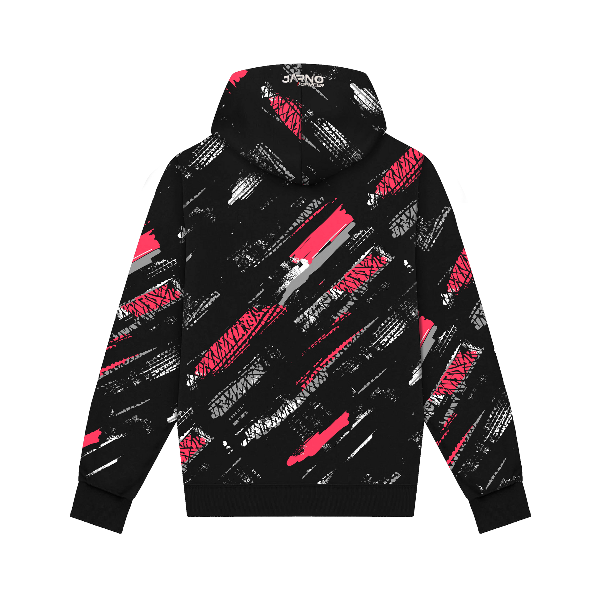Step into style with our slim fit hoodie, influenced by the strength and impact of tire tracks. This hoodie not only radiates comfort but also embodies a refined yet attention-grabbing style. The all-over tire track pattern lends a distinctive aesthetic, adding a touch of individuality to your look.